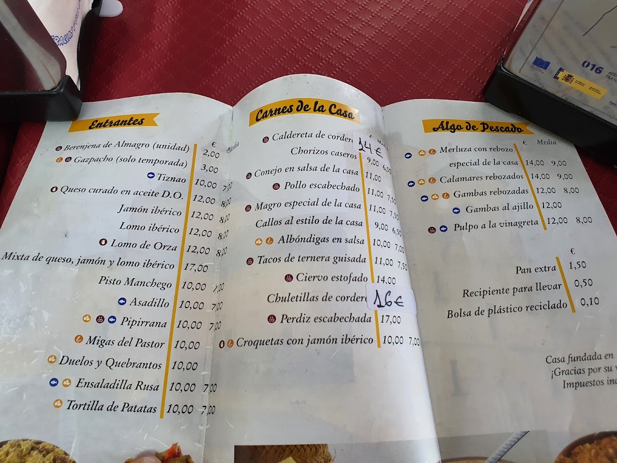 “ Came recommended by the owner of our hotel… and loved the food, the service. Tacos de ternera guisada was spectacular. Camarero was fun. Some classic manchego filling food. ”